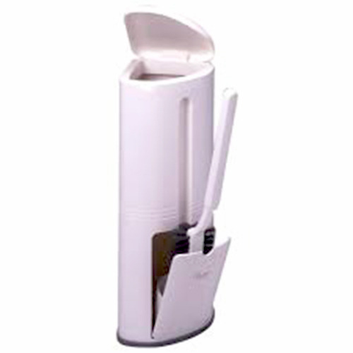 刷毛造型邊緣扁平,可刷馬桶框緣 三角形狀設計可緊貼牆角,擺放不佔空間 上層可收納垃圾,下層為馬桶刷,多種用途