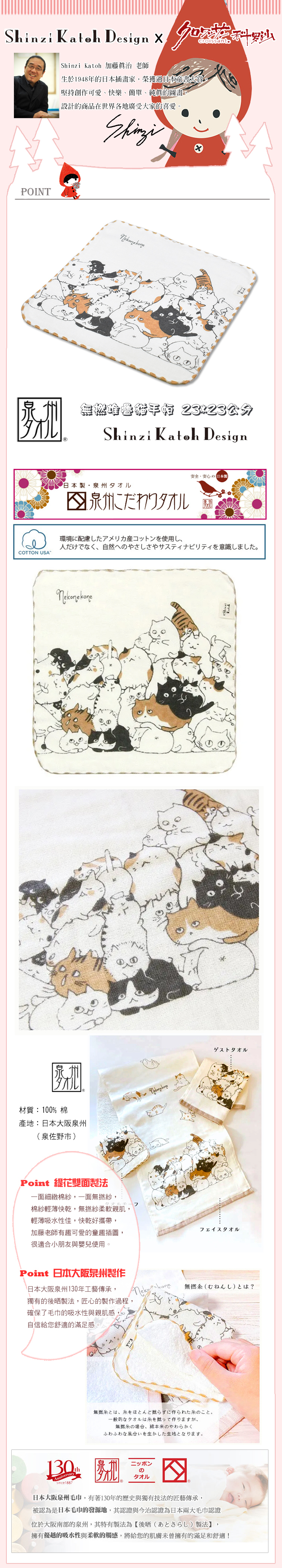【加藤真治】棉紗無撚疊疊貓手帕 23x23公分