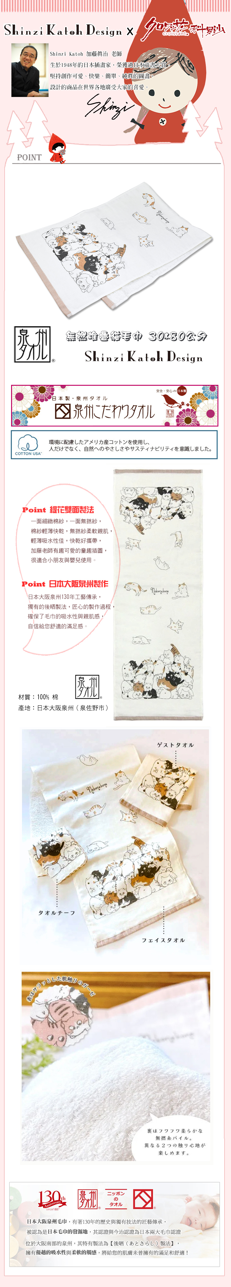 【加藤真治】棉紗無撚疊疊貓毛巾 30x80公分
