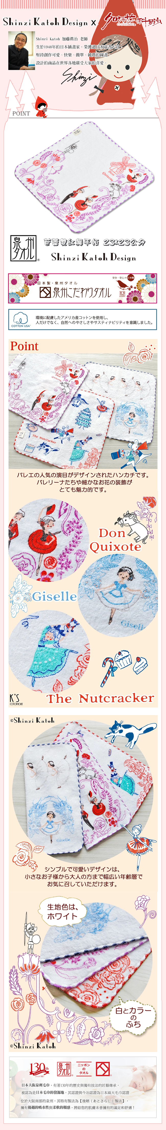 ●日本知名插畫家加藤真治的可愛插圖設計。 ●雙面紗布設計,輕柔舒適 ● 高吸水 × 快乾機能,媽媽育兒好幫手。 ●日本大阪泉州製造,130年歷史職人工藝。 ●匠心手作 × 安心滿分,舒適使用感與安全品質。