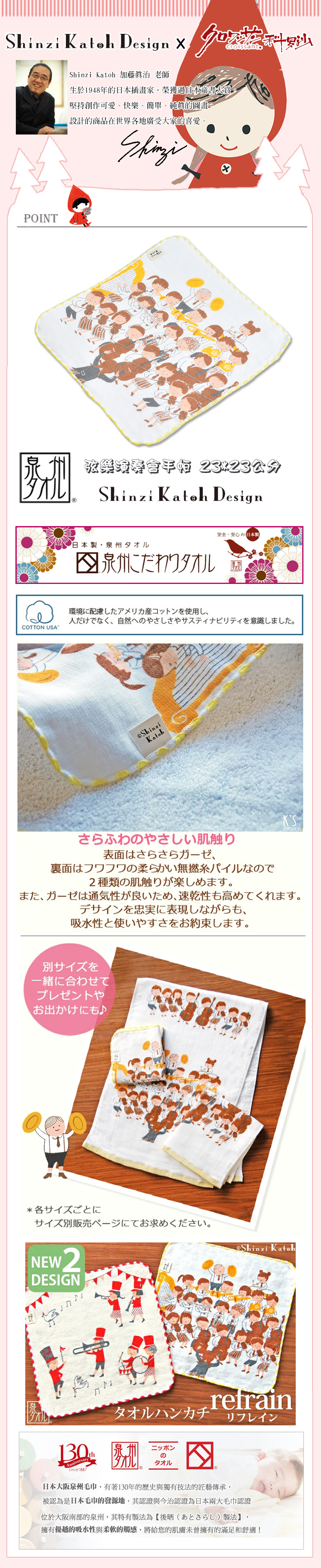 ●日本知名插畫家加藤真治的可愛插圖設計。 ●雙面紗布設計,輕柔舒適 ● 高吸水 × 快乾機能,媽媽育兒好幫手。 ●日本大阪泉州製造,130年歷史職人工藝。 ●匠心手作 × 安心滿分,舒適使用感與安全品質。