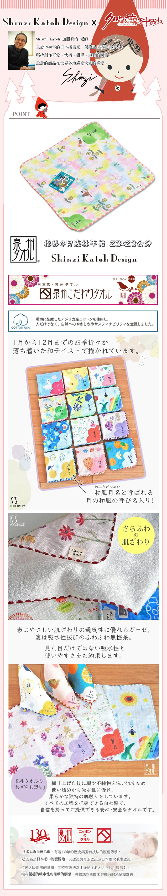 ●以日本和曆12個月月份的名子賦予每個月生命。細膩的筆觸描繪出夢幻場景,讓日常用品也能充滿童話氛圍。由日本人氣插畫家 Shinzi Katoh(加藤真治) 設計,兼具美感與實用,為生活添上一抹溫柔色彩。