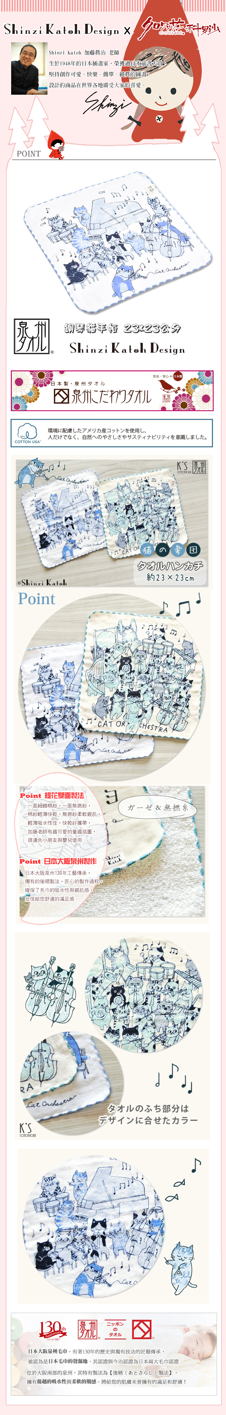 【加藤真治】無撚鋼琴貓手帕 23 x 23公分