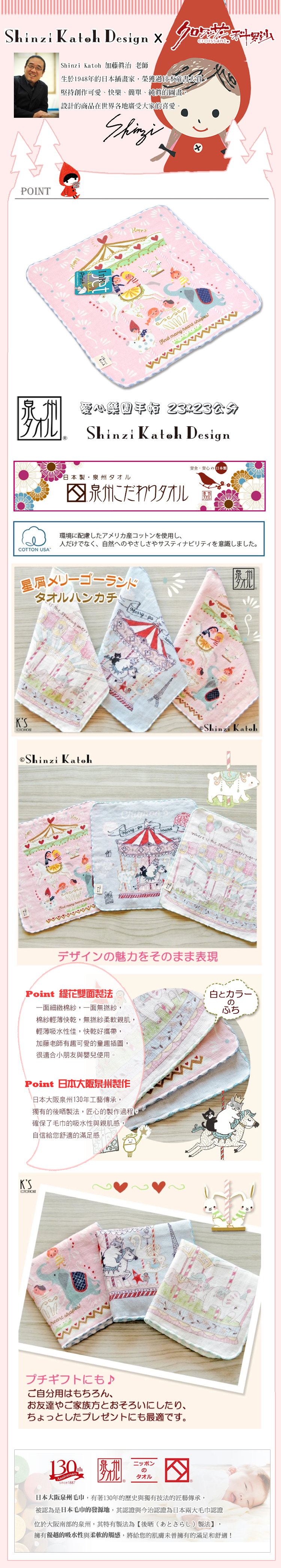 【加藤真治】雙面無撚愛心樂園手帕 23 x 23公分