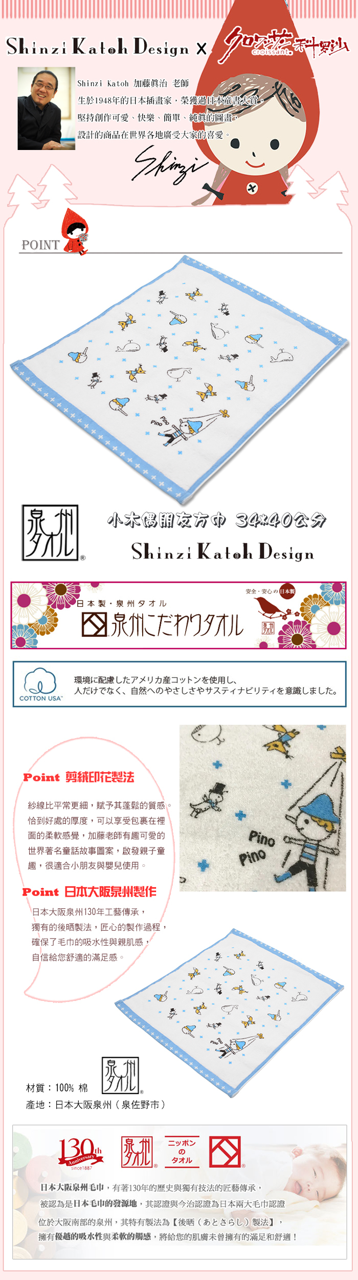 【加藤真治】 棉紗小木偶朋友方巾 30*30公分