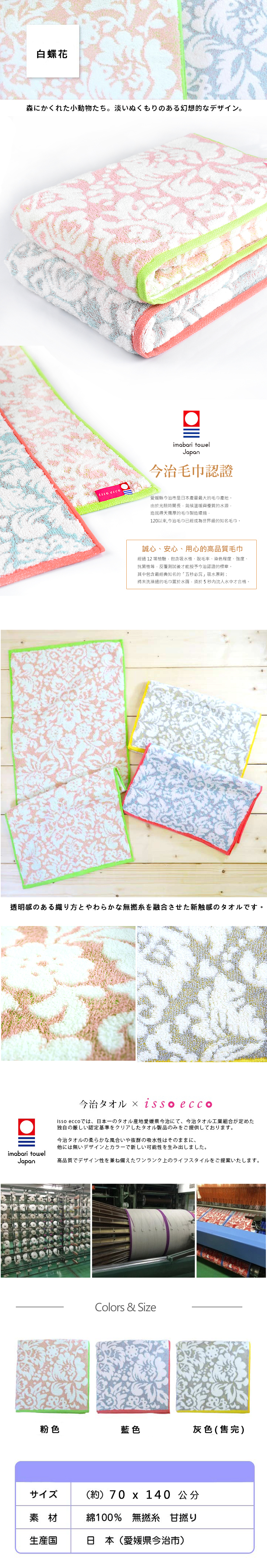 日本今治無撚白蝶花浴巾70*140公分
