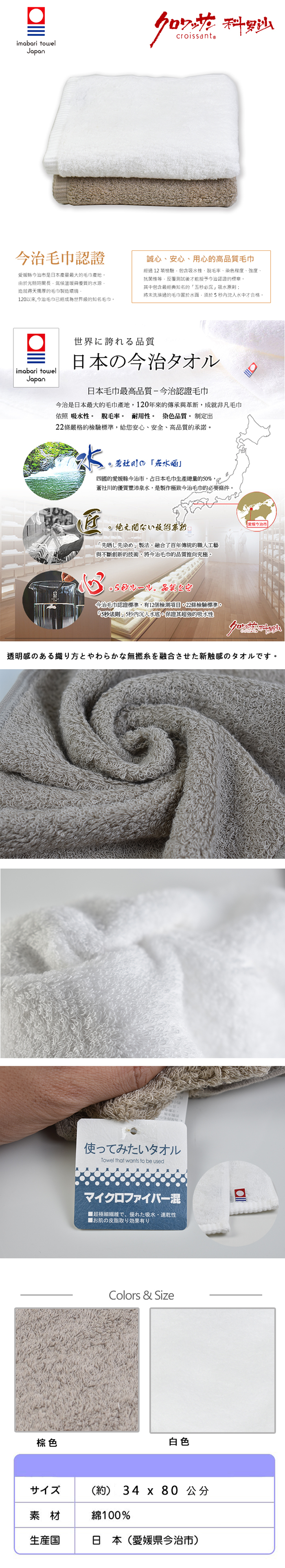 日本今治速乾細纖維毛巾 34x80公分 2色可選
