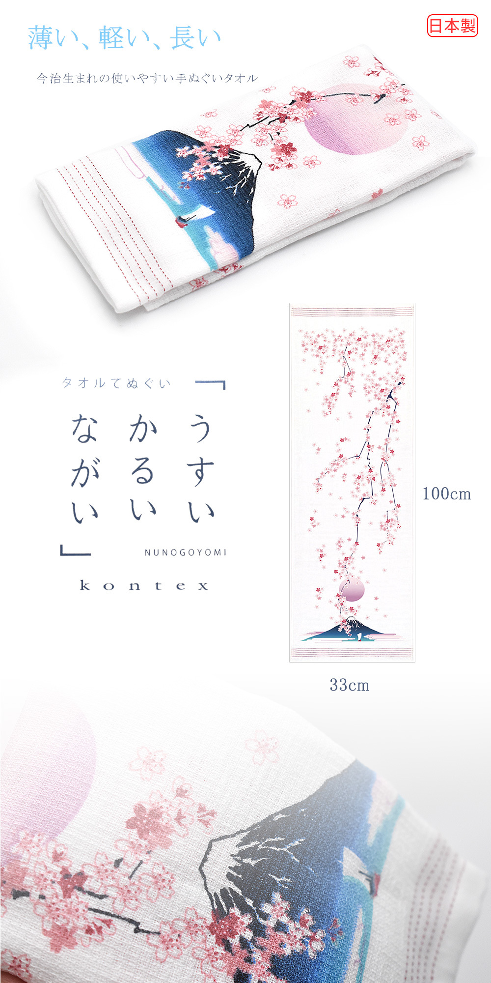 日本今治櫻日富士山長毛巾33*100公分