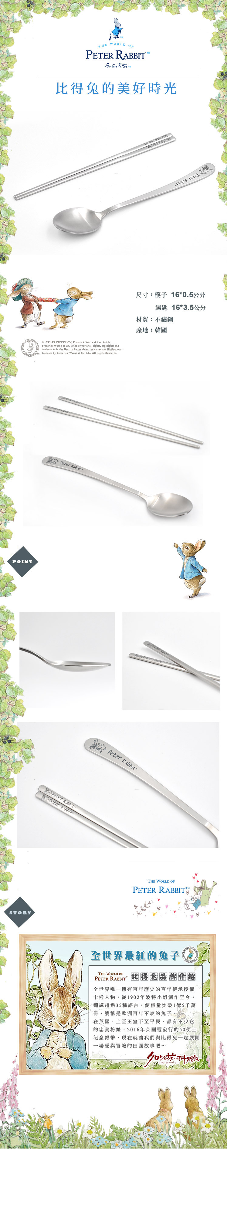 ●正版比得兔授權 ●方形筷頭不易滾動 ●波形扁平匙身有形好握 ●質感比得兔圖案