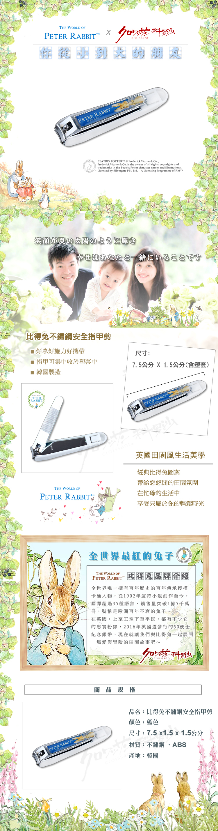 ●清潔修飾指甲,鋒利好剪 ●手柄套殼設計,減少指甲飛濺 ●韓國製造,用的安心 ●經典比得兔圖案
