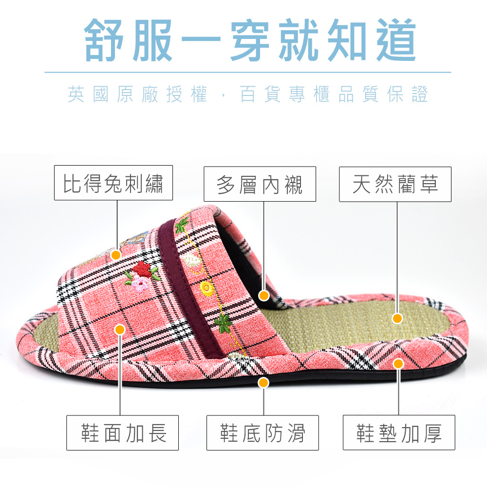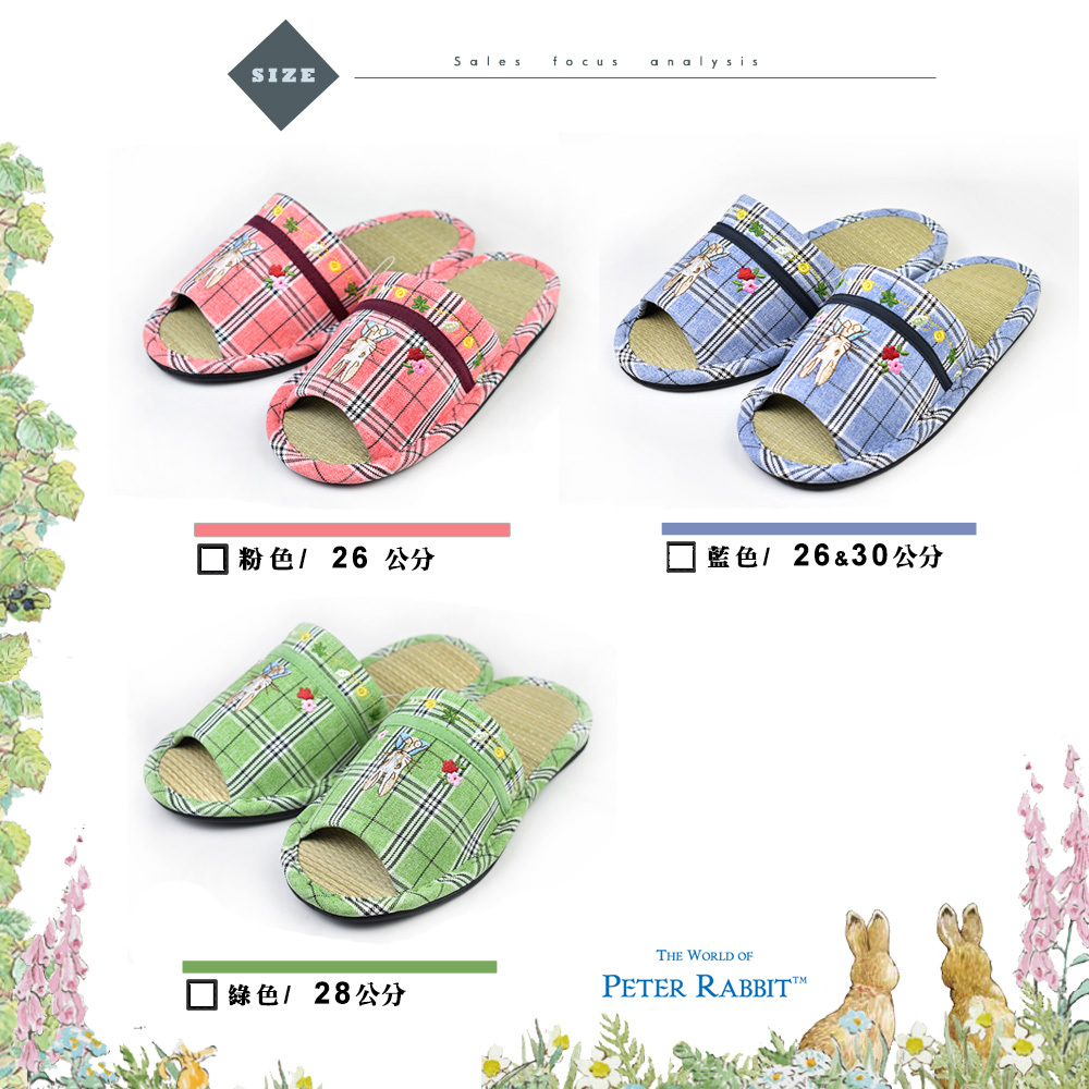 ●英國正版授權,防偽雷射貼紙 ●比得兔可愛刺繡,圖案不易脫落 ●天然藺草編織,草香無塑膠味 ●鞋底增厚紓壓,放鬆辛苦的雙腳