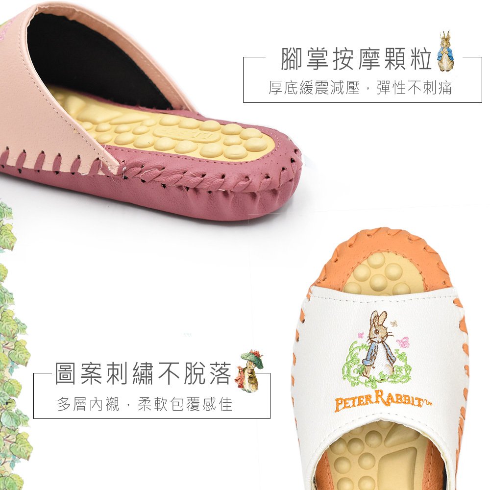 比得兔可愛刺繡,圖案不易脫落,老師傅手工親縫,舒適包覆感佳,彈性按摩顆粒,好走不刺痛