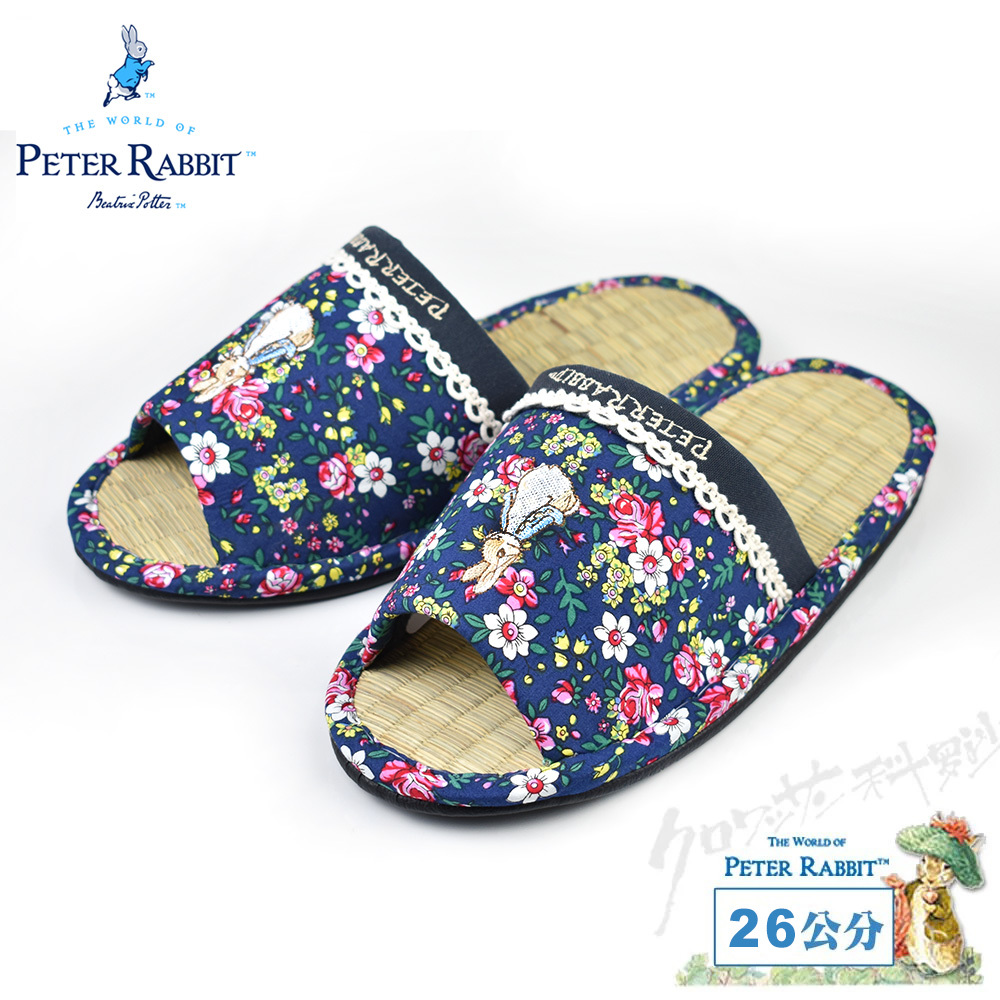 比得兔花錦蕾絲邊草拖 深藍26公分