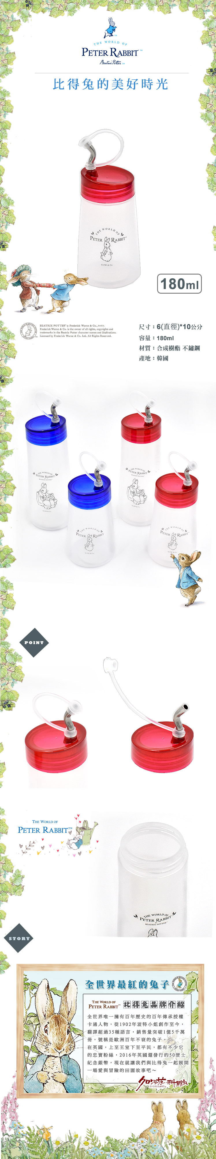 ●正版比得兔授權 ●附扣蓋衛生安心 ●重量輕操作便利 ●不易摔破小朋友也能使用