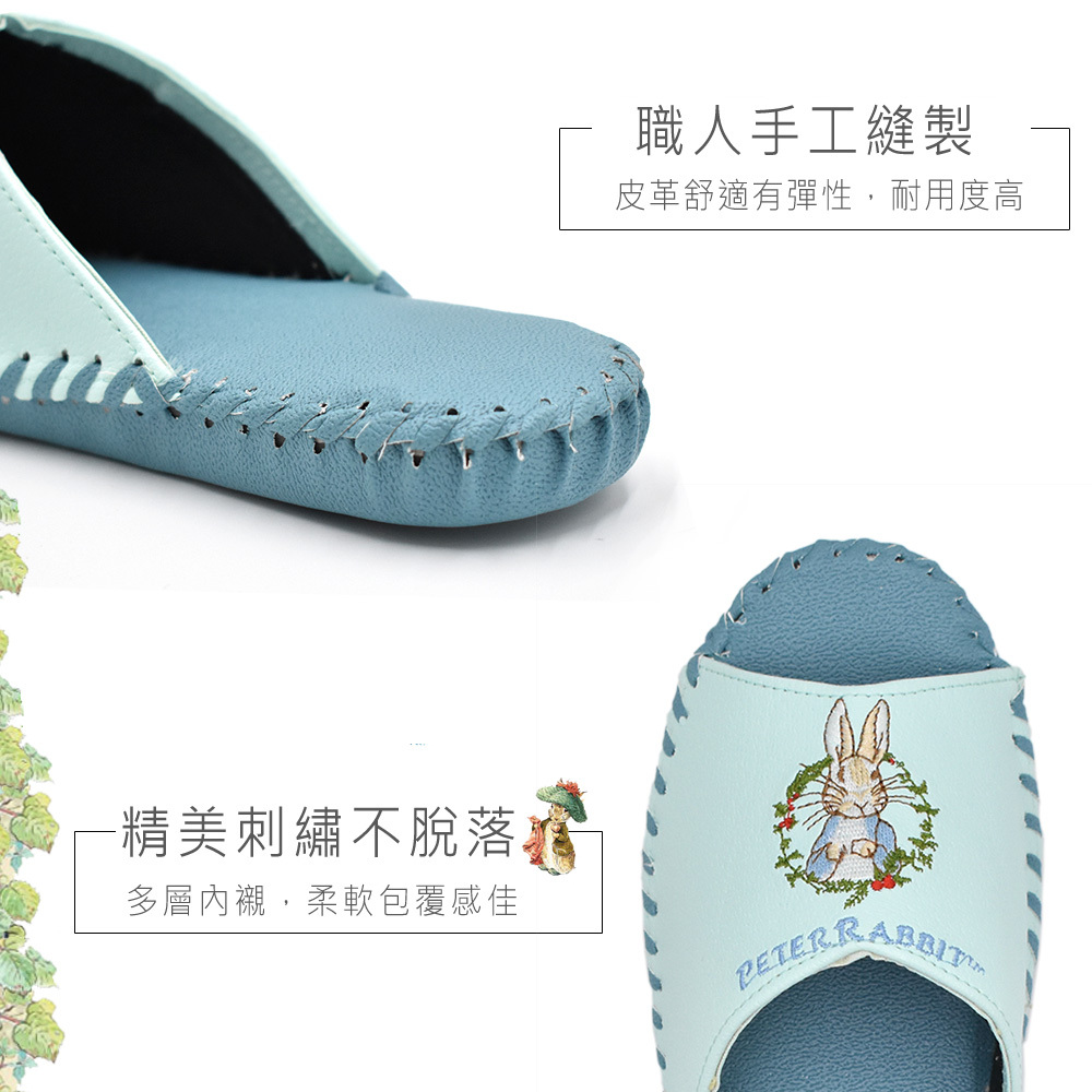 比得兔可愛刺繡,圖案不易脫落,老師傅手工親縫,舒適包覆感佳,鞋底增厚紓壓,並縫有防滑條,讓您不管在家還是在公司都能放鬆辛苦的雙腳
