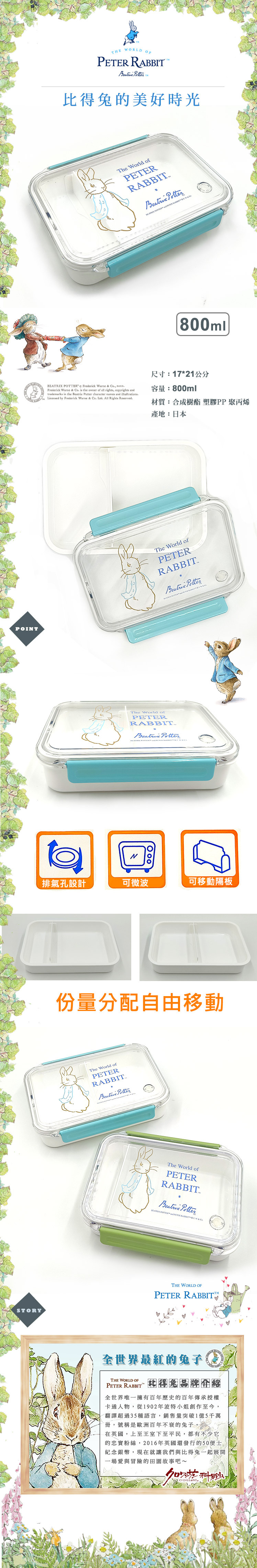 ●正版比得兔授權 ●可微波 透氣孔設計 ●比得兔透明上蓋 ●附移動式隔板 豐富創意