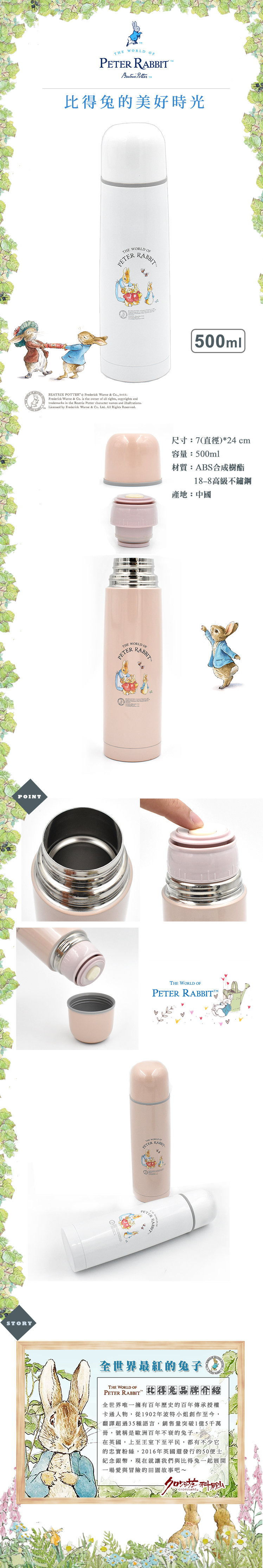●正版比得兔授權 ●按壓式出水 ●杯蓋可當水杯使用 ●瓶蓋內栓皆為抗菌材質 ●可愛比得兔圖案