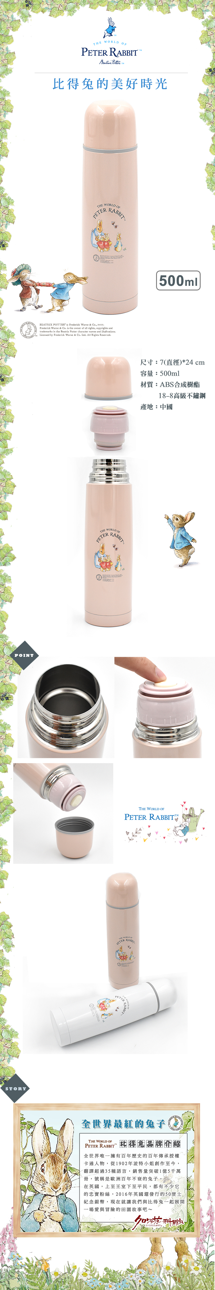 比得兔PE保溫瓶500ml-粉色