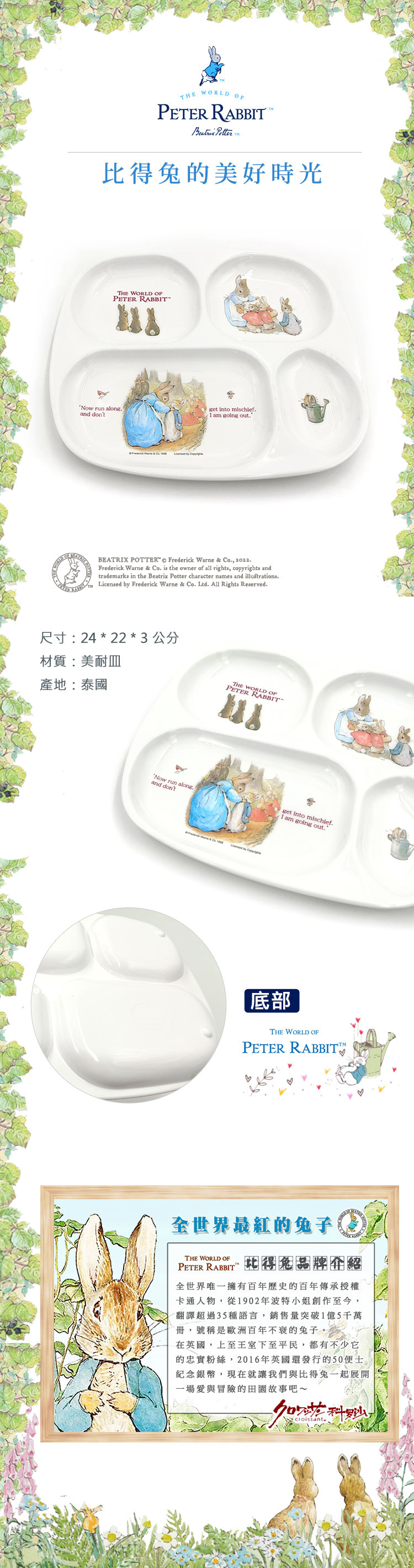 ●正版比得兔授權 ●ITS檢驗合格 ●適合幼童使用,安全 ●厚質4格盤身設計