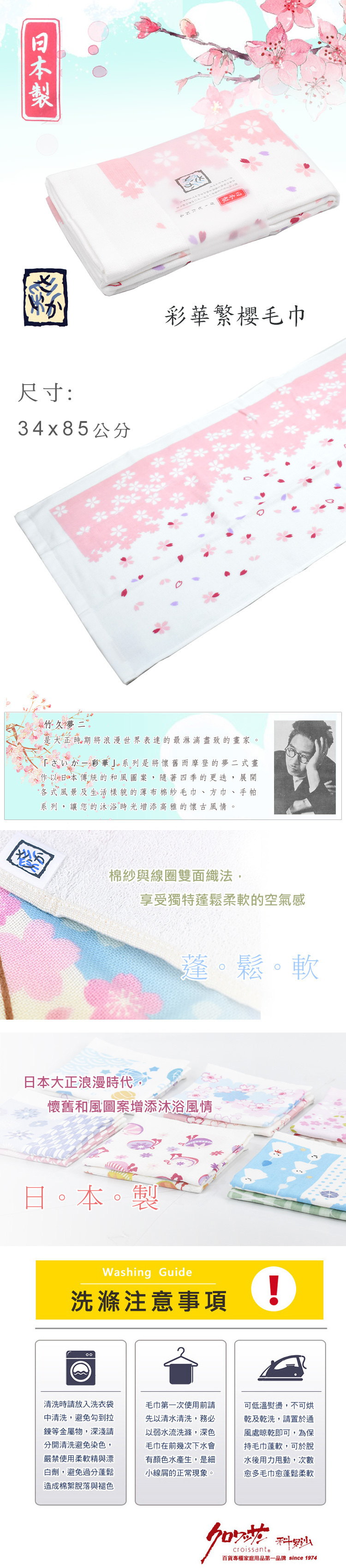 【科羅沙】彩華繁櫻毛巾 34*85公分