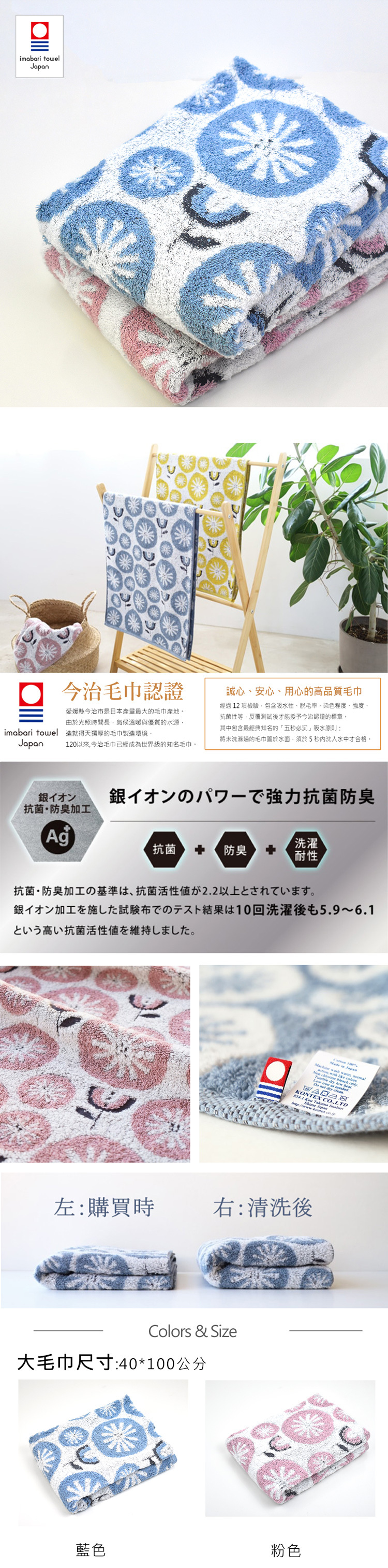 【科羅沙】日本今治抗菌圓花大毛巾 40*100公分 2色可選