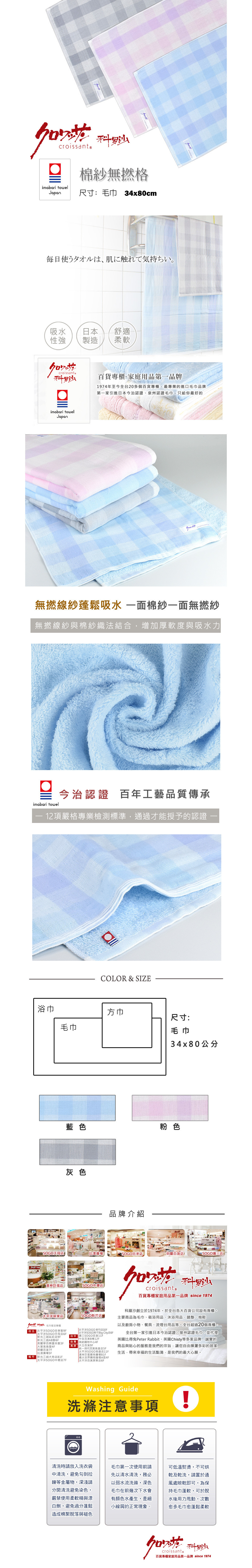 【科羅沙】日本今治棉紗無撚格毛巾34*80公分
