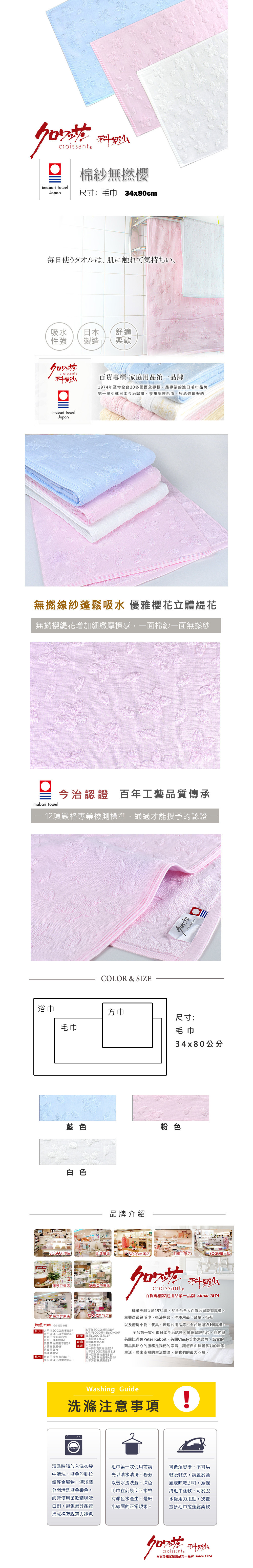 【科羅沙】日本今治棉紗無撚櫻毛巾34*80公分