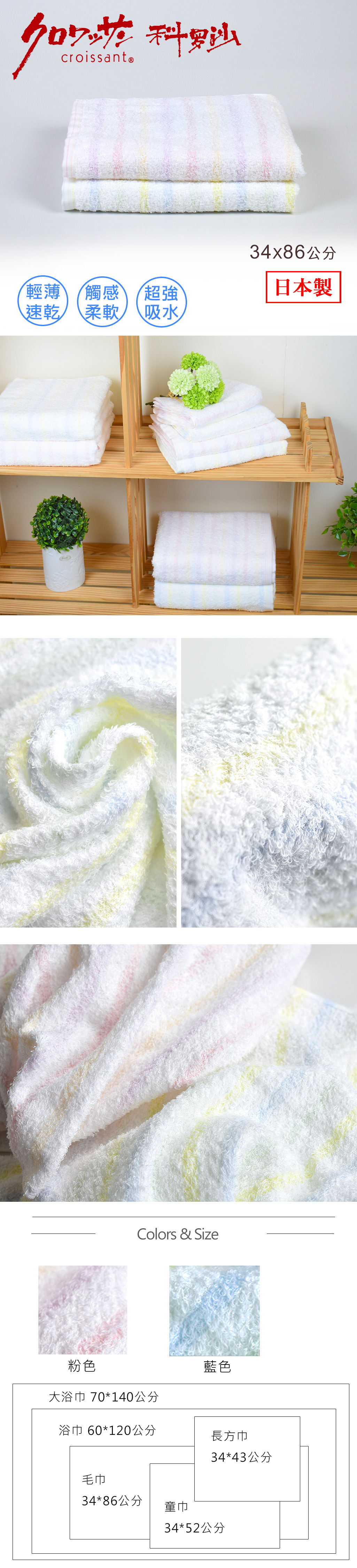 【科羅沙】日本吸水薄柔紋毛巾 34x86公分 2色可選