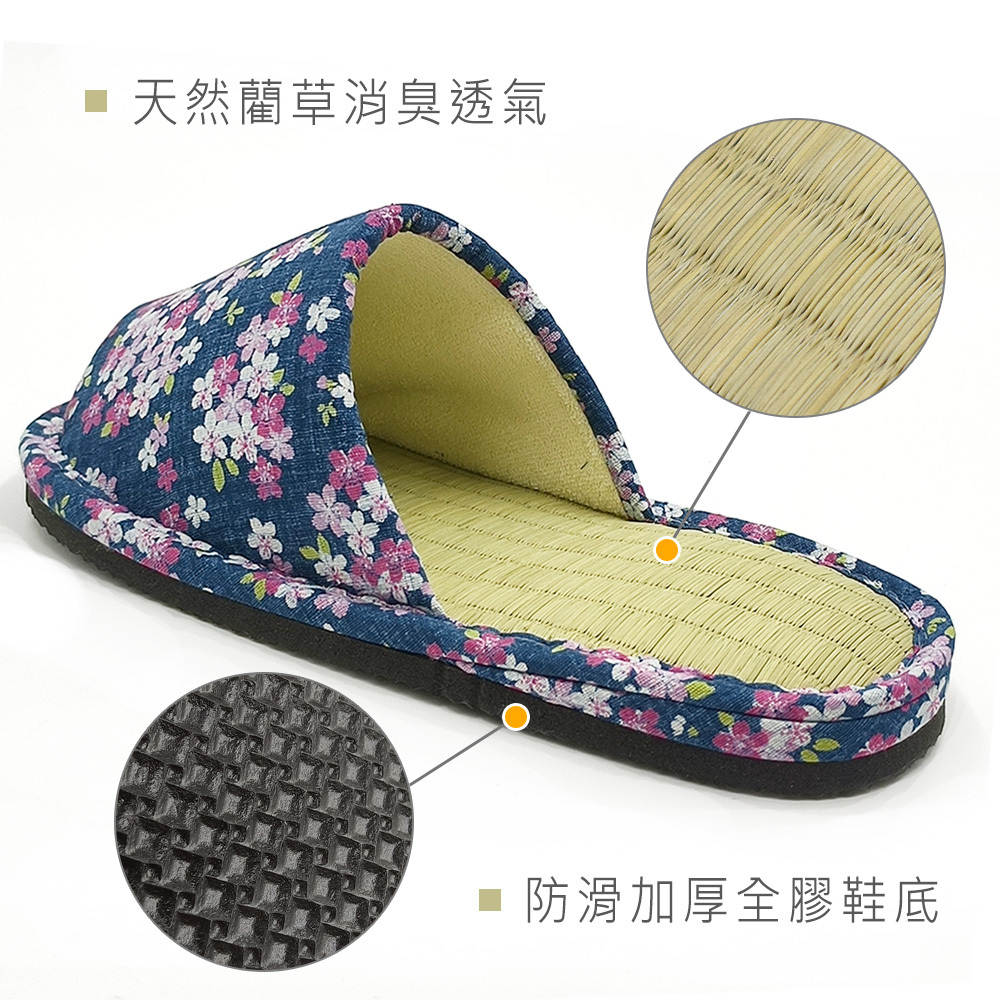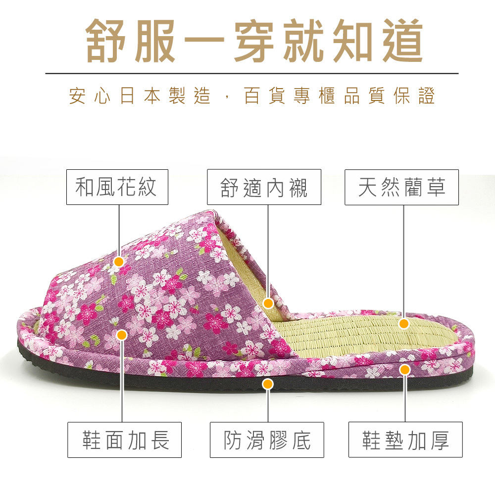 ●日本製造品質保證 ●天然藺草透氣消臭 ●鞋跟加厚舒服釋壓 ●EVA防滑膠底安全更升級