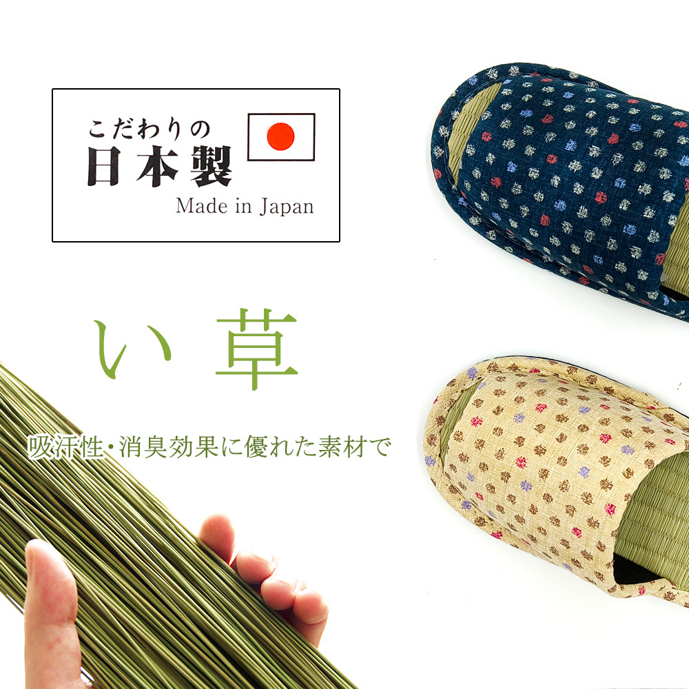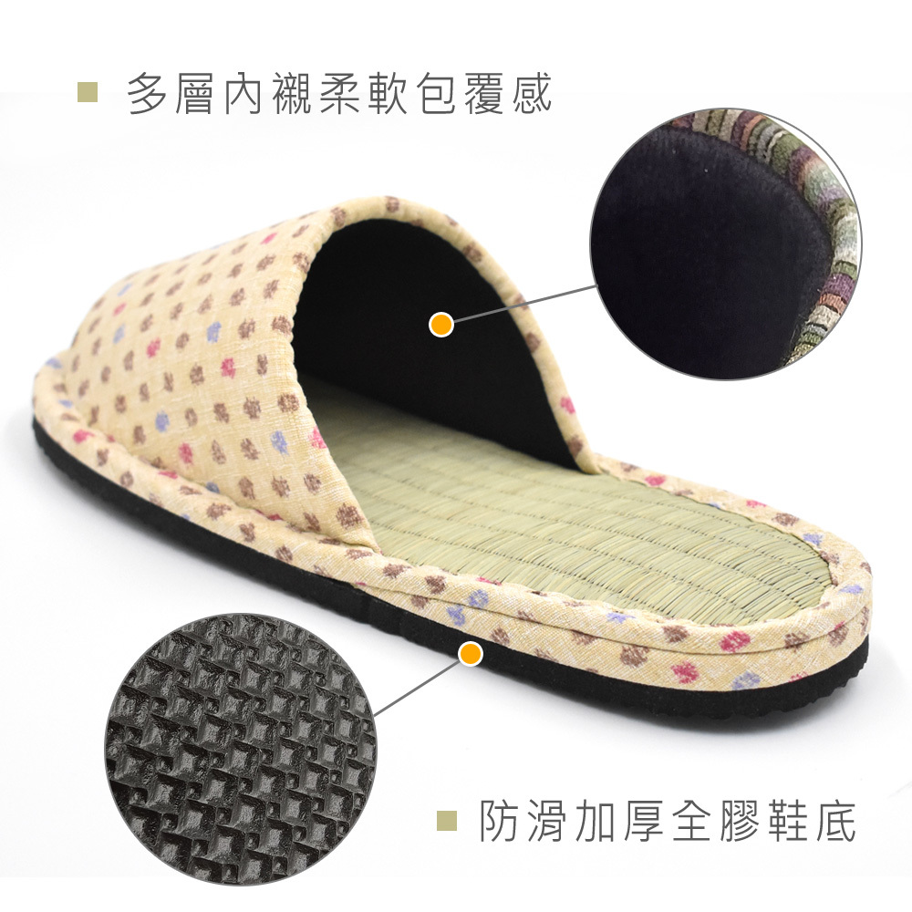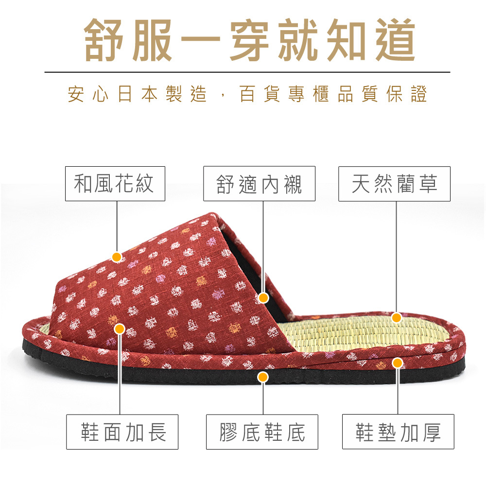●日本製造品質保證 ●天然藺草透氣消臭 ●鞋跟加厚舒服釋壓 ●全膠底防滑鞋底安全再提升