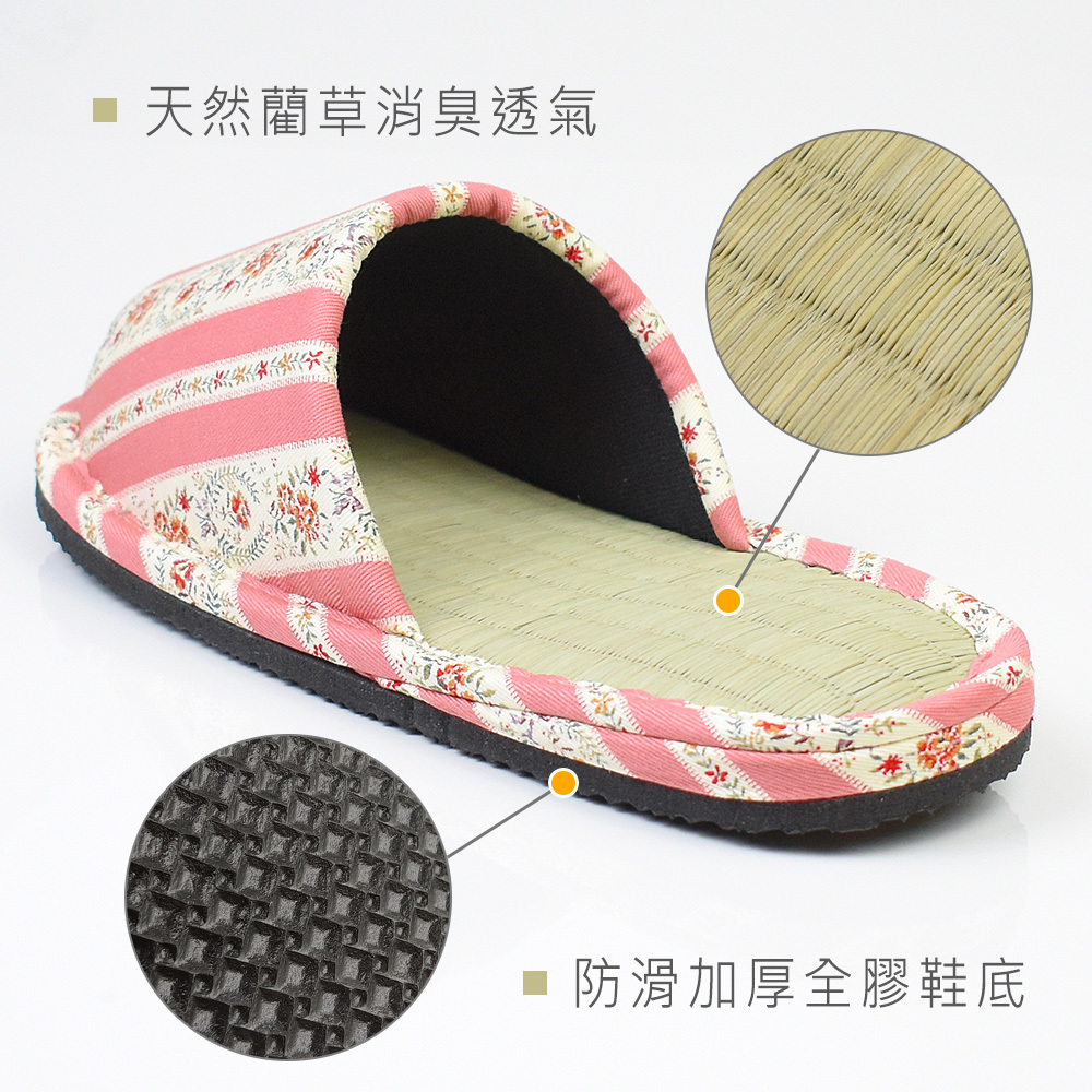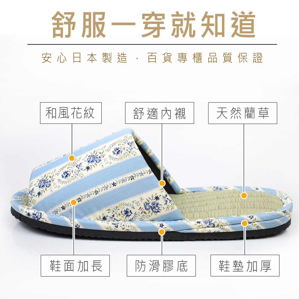 ●日本製造品質保證 ●天然藺草透氣舒適 ●鞋跟加厚舒服釋壓 ●EVA防滑膠底安全更升級