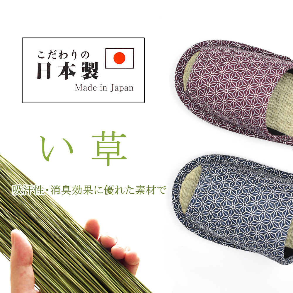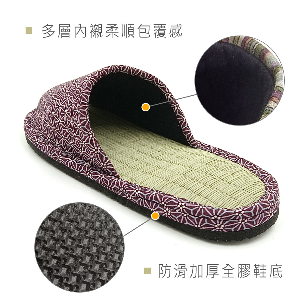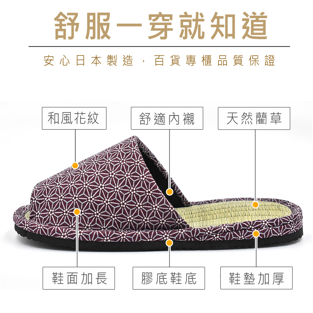 ●日本製造品質保證 ●天然藺草透氣消臭 ●鞋跟加厚舒服釋壓 ●全膠底防滑鞋底安全再提升