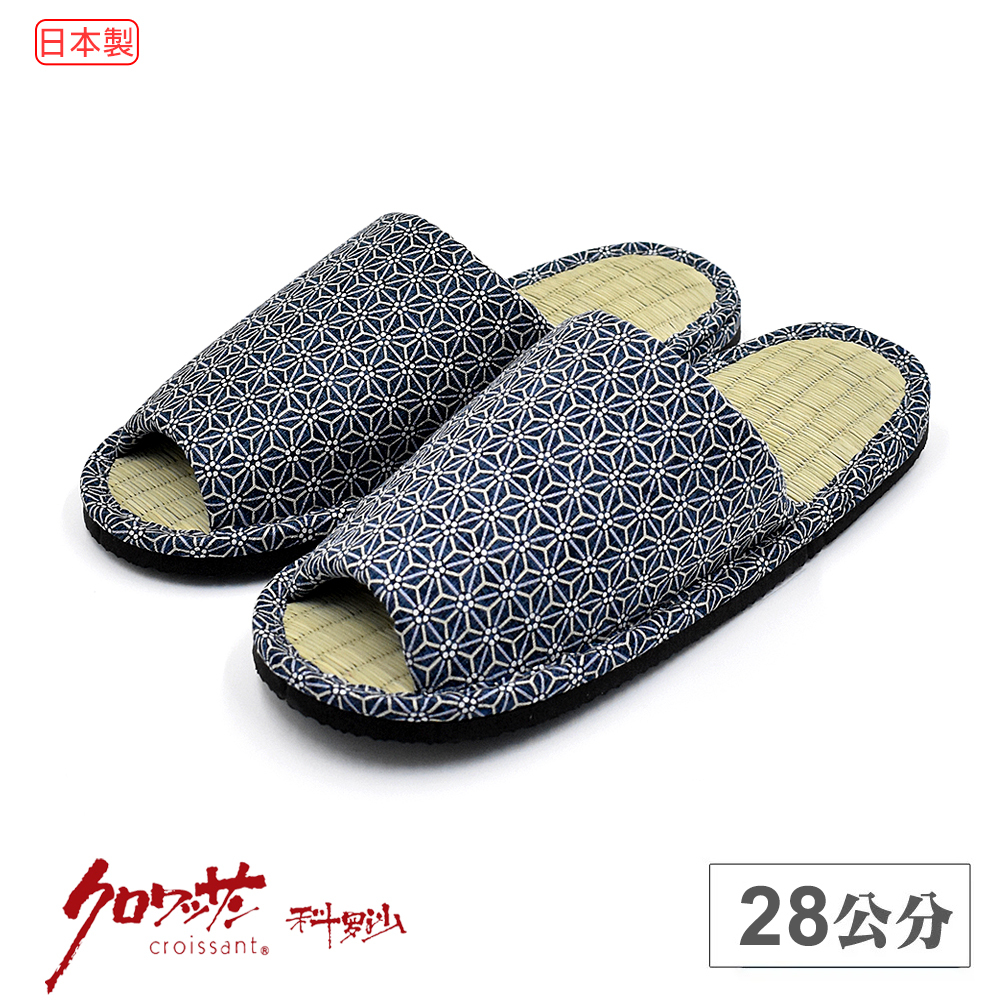 【科羅沙】日本和風直彩紋膠底耐汙黑草拖 藍28CM
