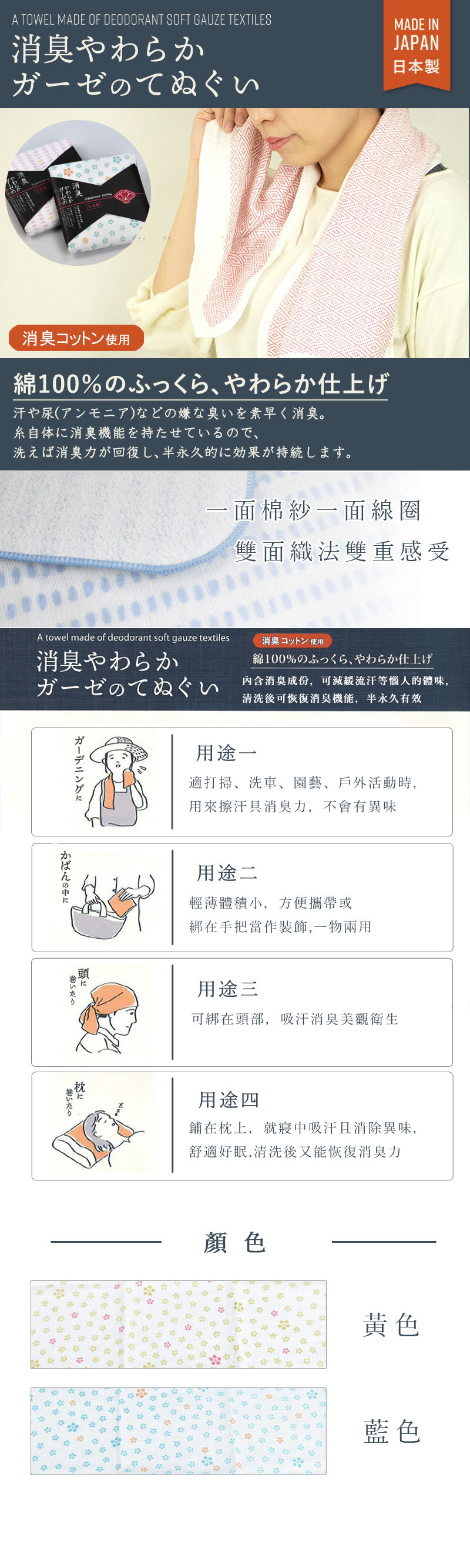 【科羅沙】日本消臭小花方巾30*30公分 (單入)