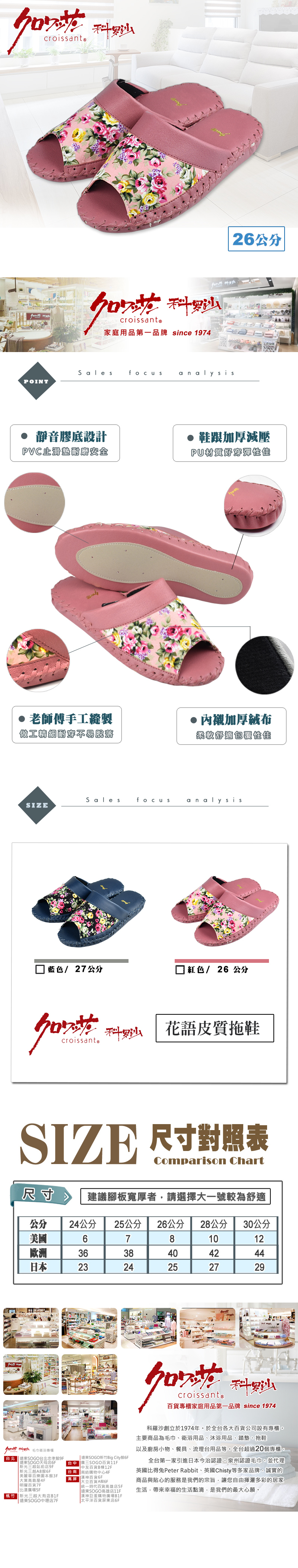 【科羅沙】Croissant 花語皮質室內拖鞋-粉色