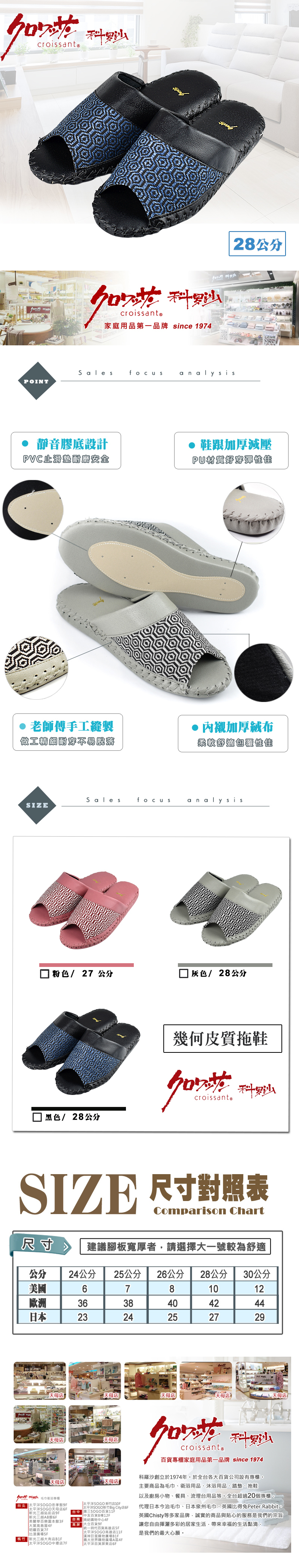【科羅沙】Croissant 幾何皮質室內拖鞋-黑色