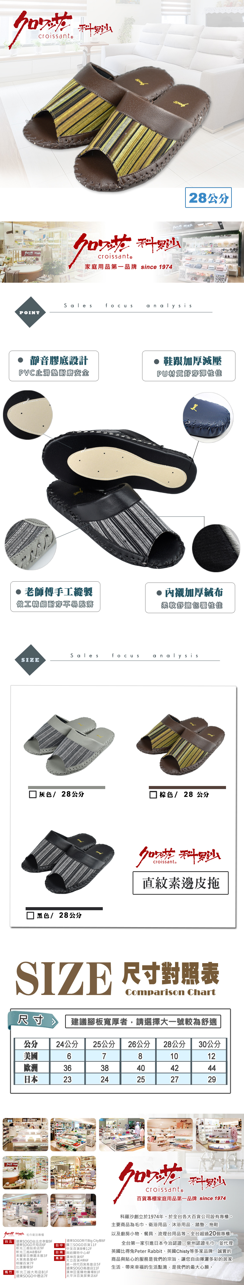 【科羅沙】Croissant 紳士直紋皮質室內拖鞋-棕色