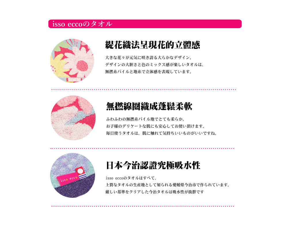 特點:以多色線紗緹花凹凸織法表現出立體的大花朵,